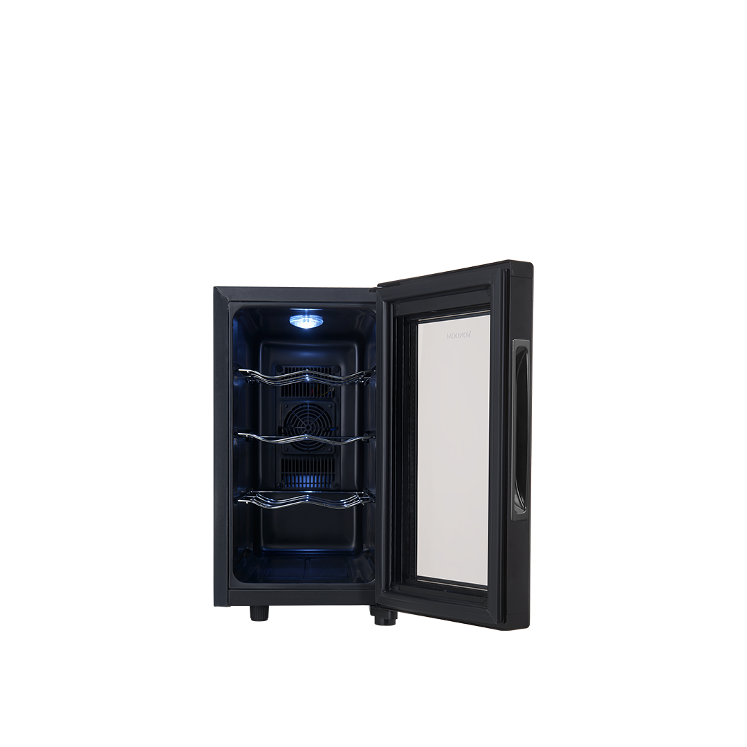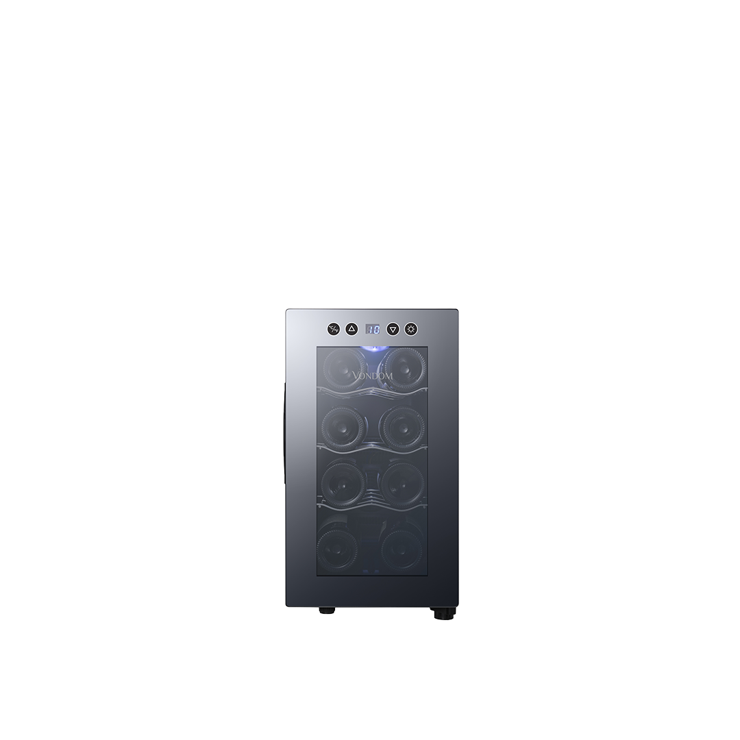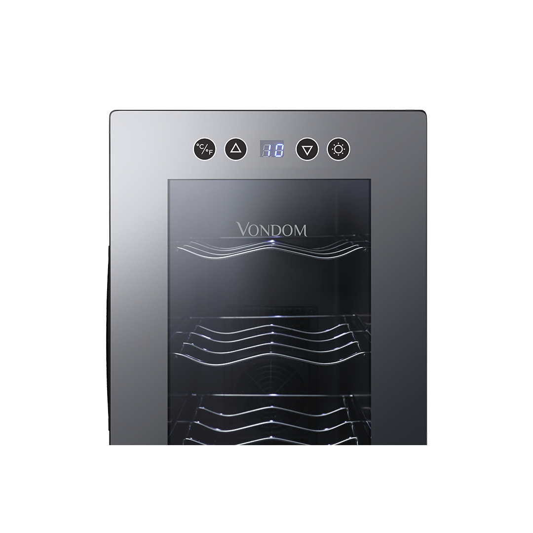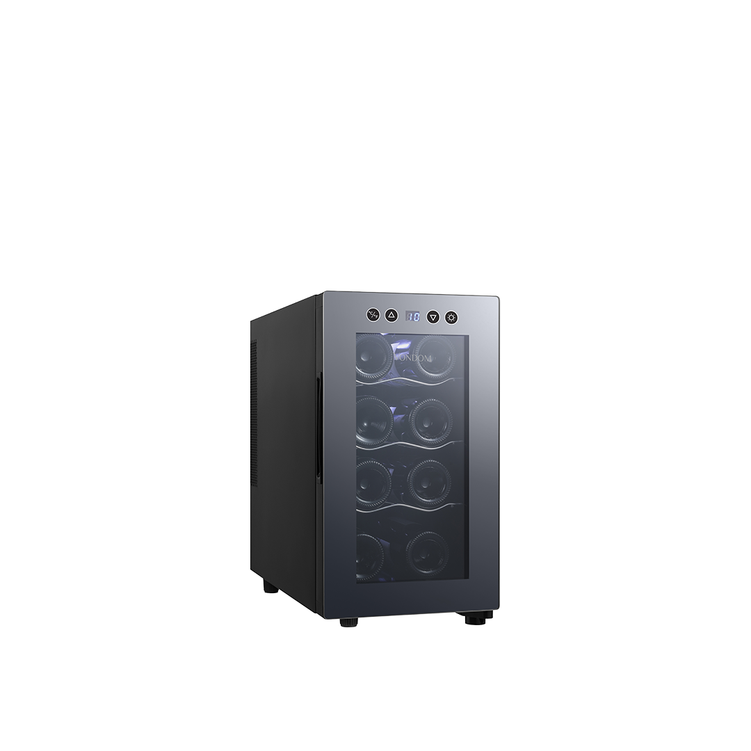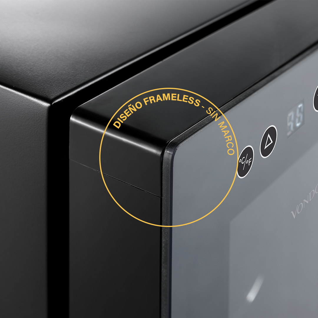 • Puerta de vidrio espejada: Su diseño Frameless (sin marco) aporta un toque moderno y protege los vinos de la luz.