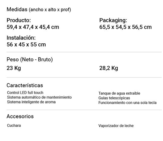 Con control LED full touch y la capacidad de ajustar la intensidad y el largo del café en 5 niveles, cada taza será perfecta.