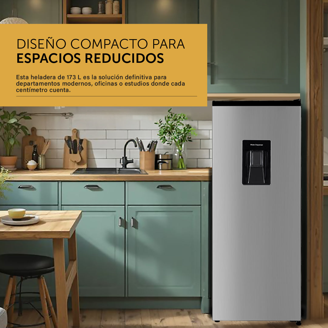 Incluye un congelador práctico para conservar carnes, helados y productos a largo plazo, junto con un cajón de verduras que preserva la frescura de frutas y hortalizas por más tiempo. Además, cuenta con un tanque de agua de 2.5 litros, listo para disfrutar de agua fresca en cualquier momento, sin necesidad de abrir la puerta.
