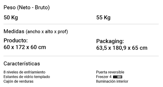 Su puerta reversible te ofrece libertad para adaptarla al espacio de tu cocina, sea grande o pequeña, y su iluminación interior brinda una visión clara de cada rincón, facilitando encontrar lo que necesitás en cualquier momento del día.