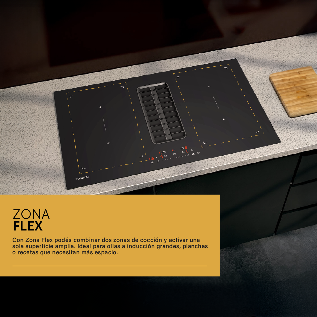 Cuenta con 4 zonas de cocción y 2 zonas Flex, ideales para adaptarse a cualquier tipo de recipiente y estilo de preparación, desde una comida rápida hasta un plato gourmet. Además, sus 9 niveles de potencia + Booster garantizan una cocción precisa y veloz, dándote el control total sobre cada receta.