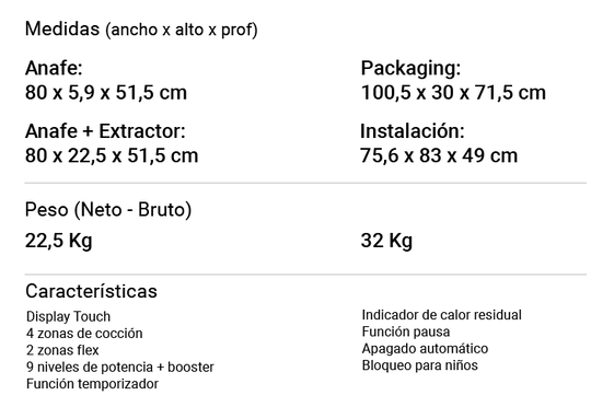 Lo mejor de todo: el extractor integrado mantiene el ambiente limpio y libre de humos, combinando rendimiento y estética en un solo producto. Así, cocinar se transforma en un momento de disfrute, creatividad y satisfacción.